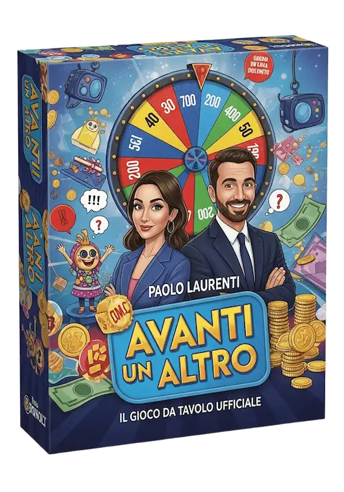 Avanti un Altro è un gioco a quiz per feste che riprende il programma televisivo italiano. Vuole risposte veloci, tensione ed errori intenzionali. A differenza dei giochi di trivia tradizionali, qui il successo deriva spesso dal sapere quando non rispondere correttamente. Il tono è giocoso e leggermente caotico; i gruppi che amano l’umorismo l’adoreranno, così come chi ama la rapidità.