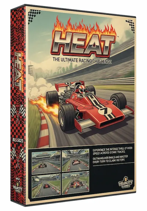 Heat è un gioco di corse in cui si regolano la velocità, le marce e l’accumulo di calore della propria auto. Le curve da affrontare sono strette e si gareggia per raggiungere la più alta posizione possibile. A ogni svolta si deve scegliere tra accelerare a più non posso o rallentare con prudenza.