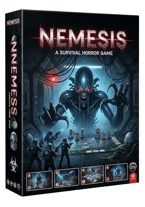 Nemesis è un gioco da tavolo semi-cooperativo, ambientato a bordo di un’astronave danneggiata alla deriva nello spazio. Una volta risvegliati dall’ibernazione, i giocatori si trovano con informazioni incomplete e obiettivi contrastanti. Quello che sanno è che alcune creature ostili sono già a bordo. Cooperare con gli altri è spesso necessario, ma gli obiettivi personali raramente si allineano perfettamente: la tensione è all’ordine del gioco!
