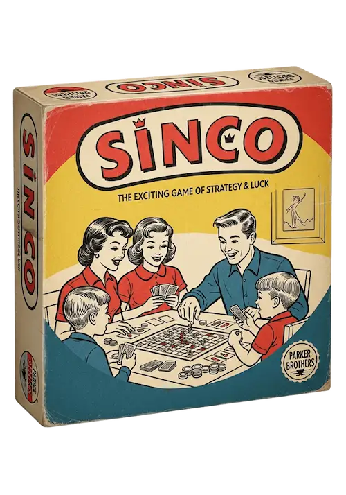 Sinco è un gioco da tavolo veloce e interattivo per 2-5 giocatori, dagli 8 anni in su. Si viaggia tra numeri e decisioni rapide, per un gameplay coinvolgente della durata di 20-30 minuti.